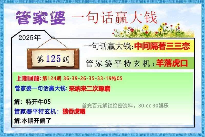 综合:龙鼠虎鸡猪羊 124期:【管家婆一句话】开:牛05